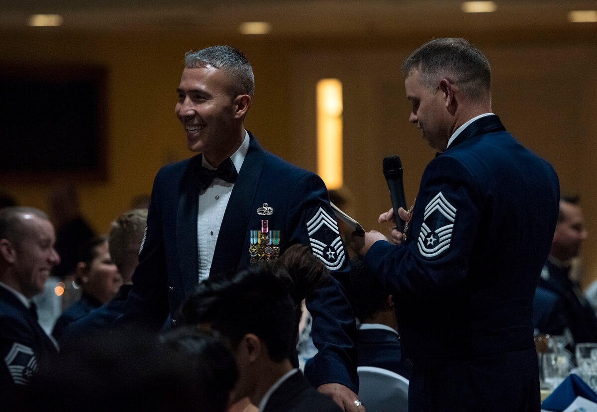 The ceremony recognized their pinnacle career achievement in reaching the highest Air Force enlisted rank and honored those who support them.