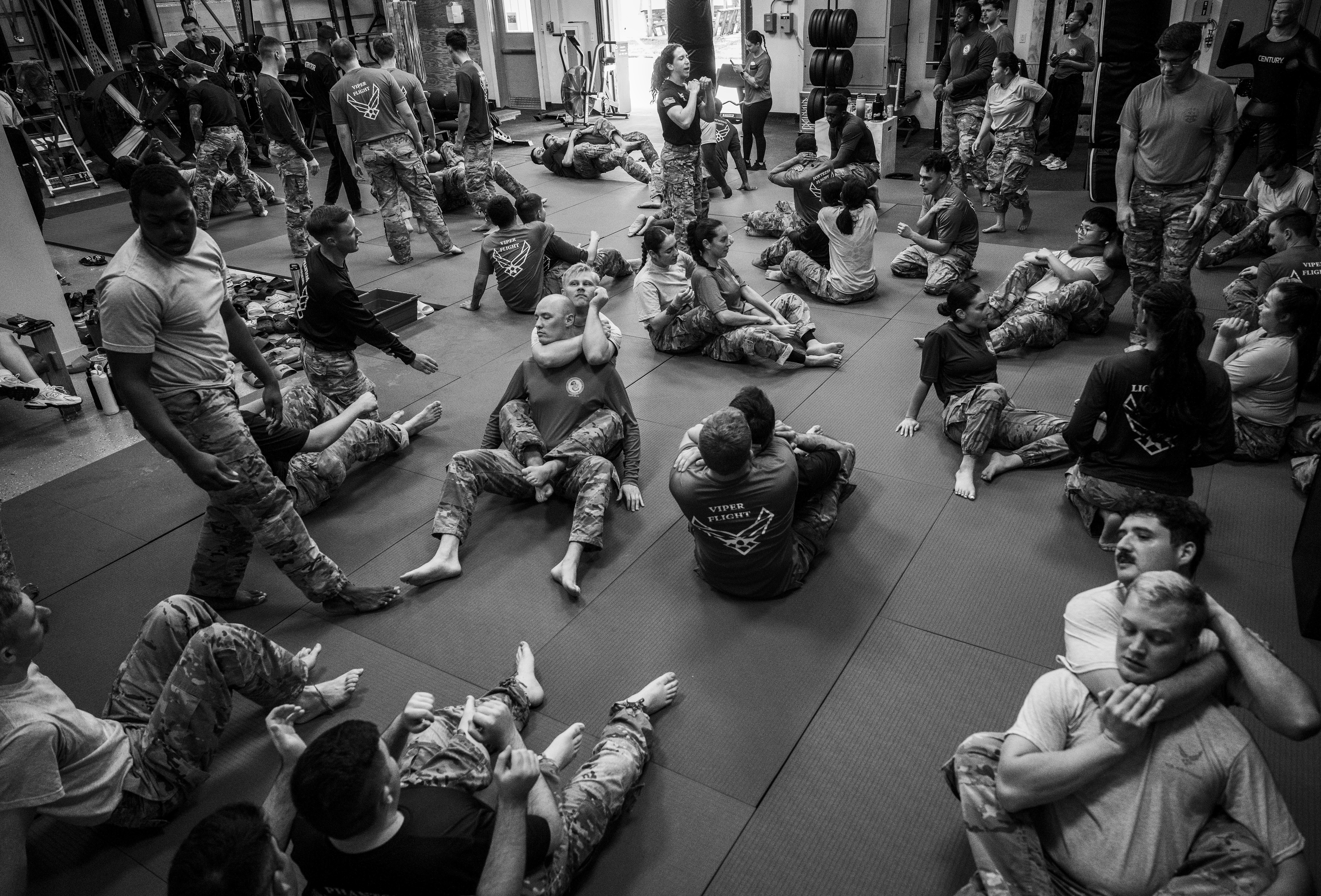 Airman Leadership School learned ground-and-pound techniques, known as combatives training with Eglin's Survival Evasion Resistance Escape instructors from the 96th Operations Support Squadron. ALS added combatives training into the curriculum in 2025 to add more focus on a warfighter ethos. Imagery by Samuel King Jr.