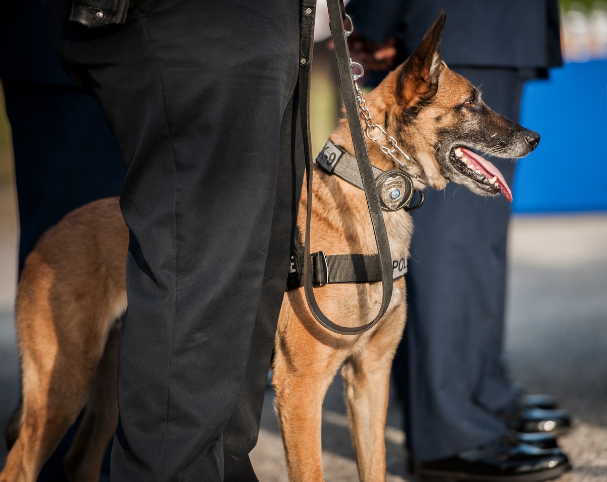 Chief Master Sgt. Samel Brown, 96th Security Forces Squadron, commands his flight of Airmen into the proper formation prior to the Peace Officers’ Memorial Ceremony May 16 in Fort Walton Beach, Fla. The ceremony was to honor fallen police officers from the previous year by reading their names aloud. Security forces Airmen from Eglin and Hurlburt Field attended and participated in the event. The ceremony is one of many events taking place during National Police Week. (U.S. Air Force photo/Samuel King Jr.)