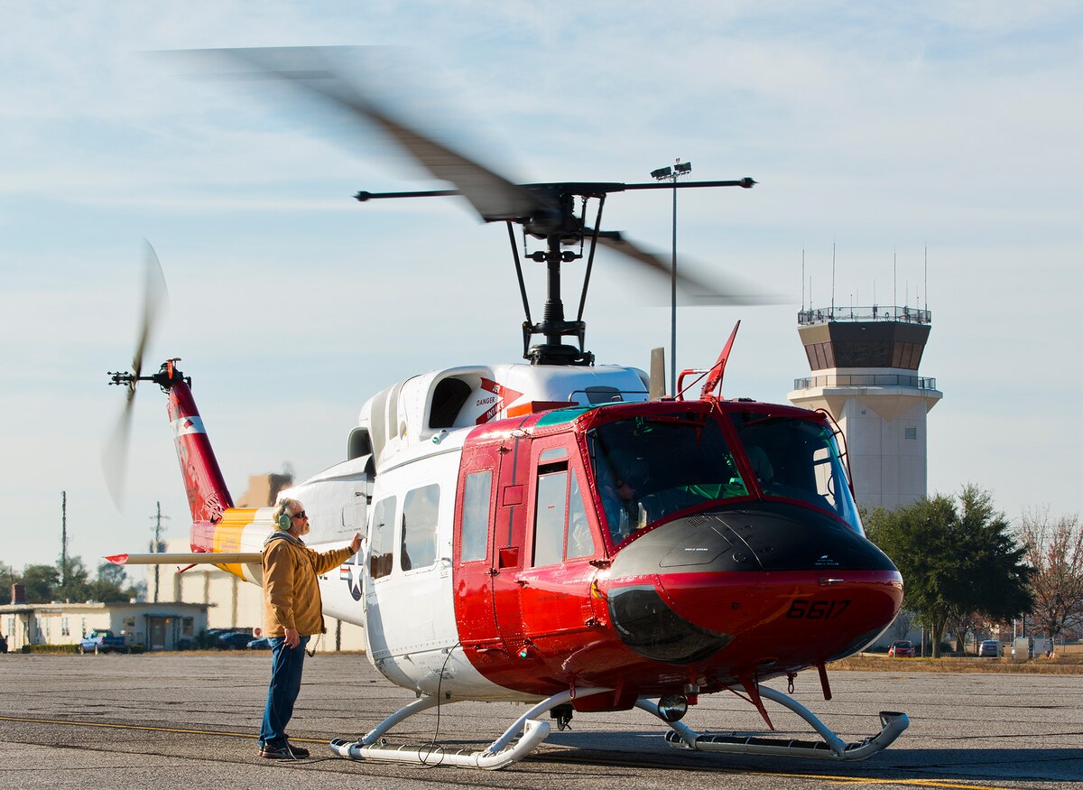 Tech. Sgt. Joe Kendall, a special missions aviator with the 413th Flight Test Squadron, prepares for flight in the UH-1 Huey at Duke Field Fla. The 413th FLTS provides developmental testing to rotary wing aircraft such as the UH-1, CV-22 and the C-130. (U.S. Air Force photo/Samuel King Jr.)