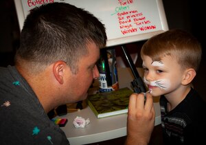 July 26, 2018 Cat face Staff Sgt. Coleman Simmons, 53rd Wing, paints a cat face on Wolfgang Korzen, son of 2nd Lt. Konrad Korzen, Air Force Life Cycle Management Center, July 25 at the Digital Library at Eglin Air Force Base, Fla.