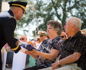 The Gold Star parents of a deceased Airman were honored here April 13 at an Explosive Ordnance Disposal school graduation ceremony, the first time such an event has occurred.