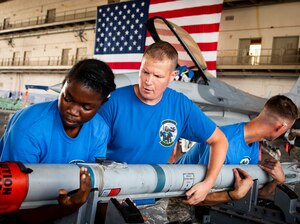 July 16, 2018 Blue battles Red 96th Test Wing weapons Airmen battle during a quarterly loadcrew competition.