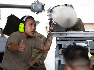 March 1, 2022 F-16 weapons crews battle in annual competition Three teams from the 96th Aircraft Maintenance Squadron's F-16 unit raced to load an AIM-120 and a GBU-12 the fastest and with the fewest errors.