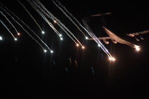 A 62nd Airlift Wing C-17 Globemaster III aircrew found itself away from the rainy climate of Joint Base Lewis-McChord, Wash., and into the sunshine here to participate in an Air Mobility Command flare effectiveness test, that began Feb. 29.The C-17 crew along with a C-5 crew from Travis AFB, Calif.,
