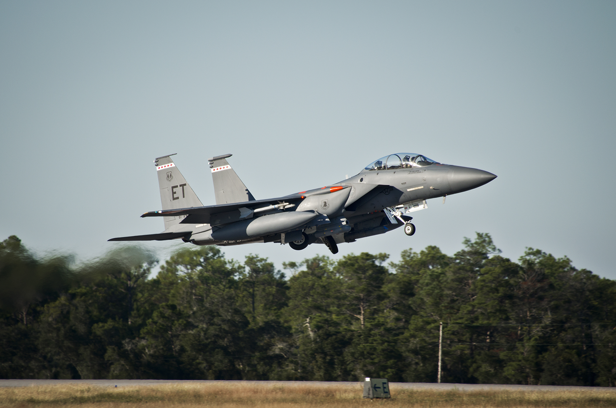 An F-15 from the 40th Flight Test Squadron takes off for a training sortie from Eglin Air Force Base, Fla. The 40th FTS is responsible for developmental flight testing for F-15s, F-16s and A-10s for the 96th Test Wing. (U.S. Air Force photo/Samuel King Jr.)